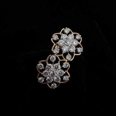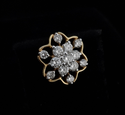 A 7 pressure-settled diamond clique for the centre of flower, and a diamond on the edge of six gold petals of the flower.